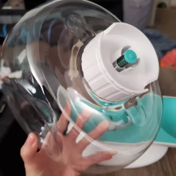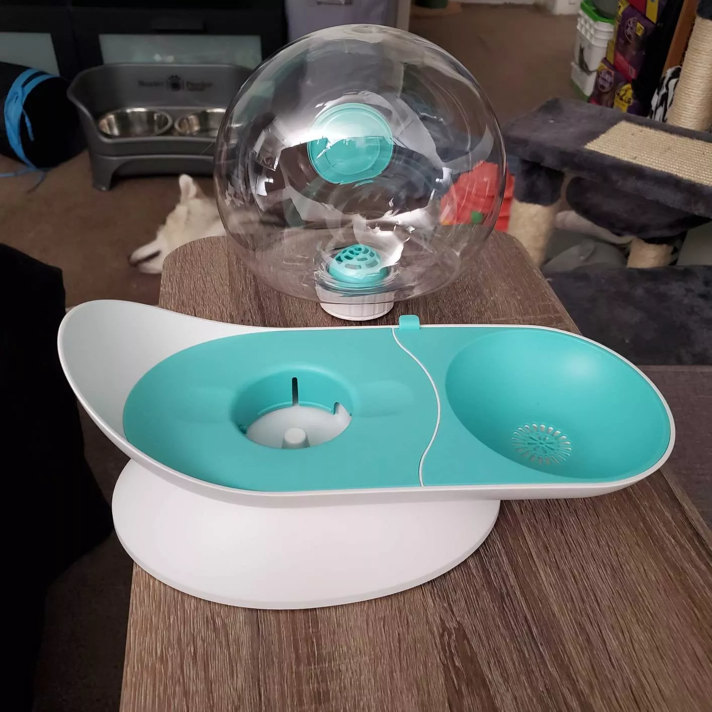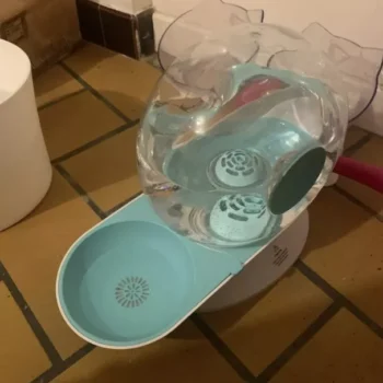 Absolutely delighted with this purchase! The modern design in the lovely pastel color fits perfectly with our home decor. More importantly, our cat loves the constantly fresh water. Easy to set up and very quiet operation.
