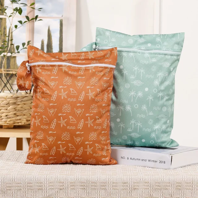 2-Pack Waterproof Wet Dry Bags for Diapers, Swimsuits, Gym & Travel