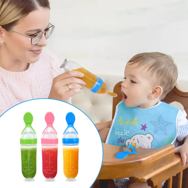 Make feeding time simple and stress-free with this 2-piece set of silicone feeding bottles designed especially for newborns and toddlers. Combining a pacifier, feeding bottle, and training spoon all in one, these tools help your baby transition smoothly from milk to solid foods like rice cereal and supplements. Made from soft, BPA-free silicone, they are gentle on delicate gums and easy for little hands to hold.