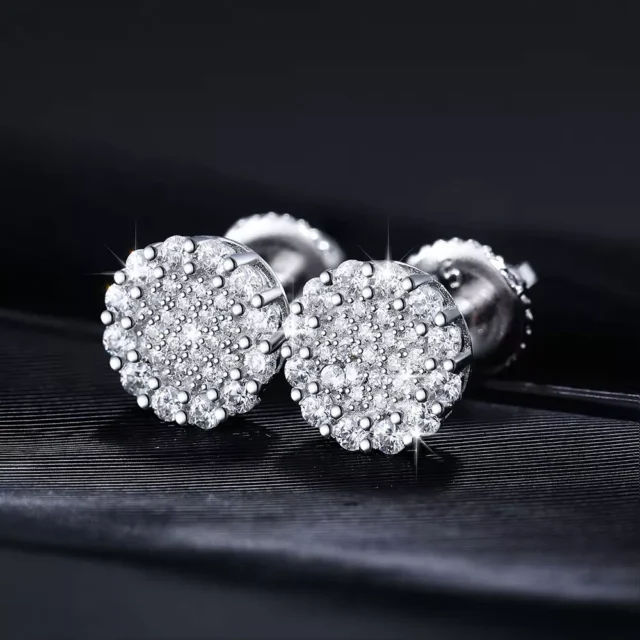925 Sterling Silver Moissanite Diamond Halo Stud Earrings – Luxury Sparkle