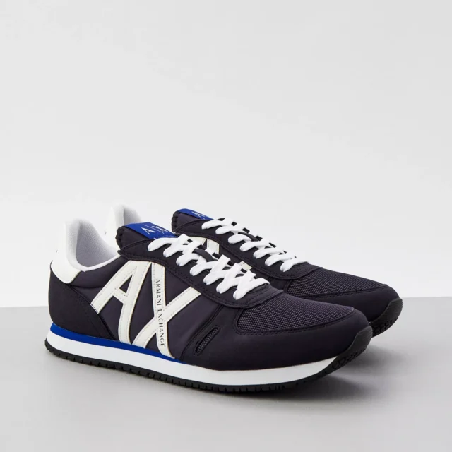 Step up your footwear game this season with Armani Exchange Men’s Printed Sneakers in a striking blue design. These sneakers are crafted to bring a sporty edge to your fall and winter wardrobe. With their bold print pattern and durable build, they are perfect for active days or casual outings. Whether you’re running errands, meeting friends, or just relaxing, these sneakers add a contemporary flair to your look while keeping you comfortable all day long.