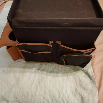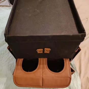 I bought two of these, and I'm planning to give one to my daughter. It feels strong and durable, and for now, I have my wipes, sunglasses, and tissues in it. It can also hold drinks easily and sits nicely on the seat. I like that I can rearrange the compartments to fit whatever I need to put in it.