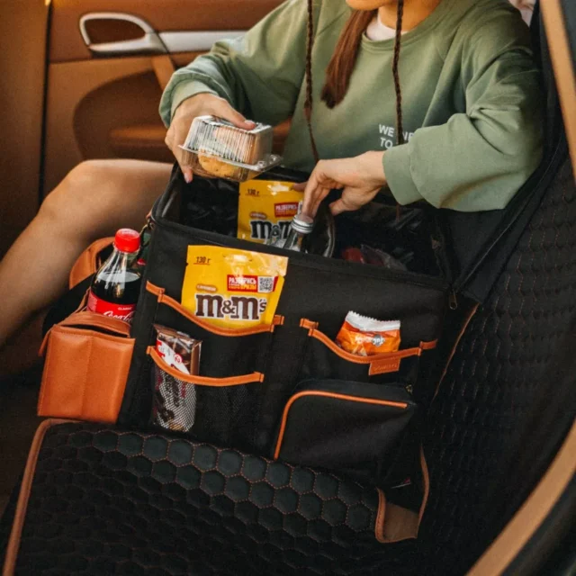 A MUST-HAVE for road trips! I recently purchased this car organizer, and now I can't imagine a road trip without it. The organizer fits comfortably in the back seat, offering a substantial storage solution without encroaching on passenger space. I was able to pack all of my road trip essentials, snacks, and then some. The waterproofing feature is just the cherry on top. During a recent trip, a bottle of soda toppled over and, to my relief, no inch of my car's upholstery was damaged. The aesthetic is also pleasing - this color scheme matches my solid black car interior perfectly. Lastly, the quality of the materials used is commendable. The organizer is well-constructed, sturdy, and feels like it will last for years. It's an investment that I'm glad to have made. Thank you Owleys team, I will definitely recommend this brand to others.