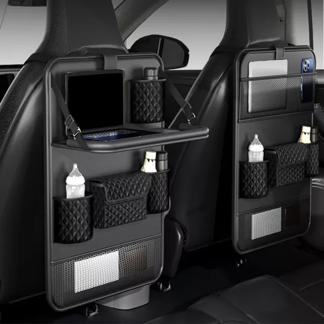 Unlike ordinary car organizers, this model combines versatility with luxury. The PU leather offers a high-end feel and long-lasting durability, while the foldable tray adds an extra layer of comfort for passengers. It’s not just an organizer—it’s an upgrade to your car’s interior experience.
