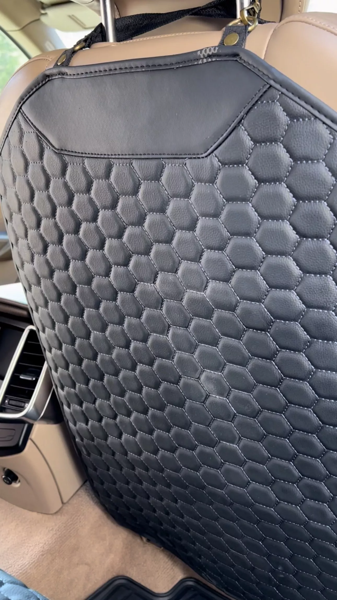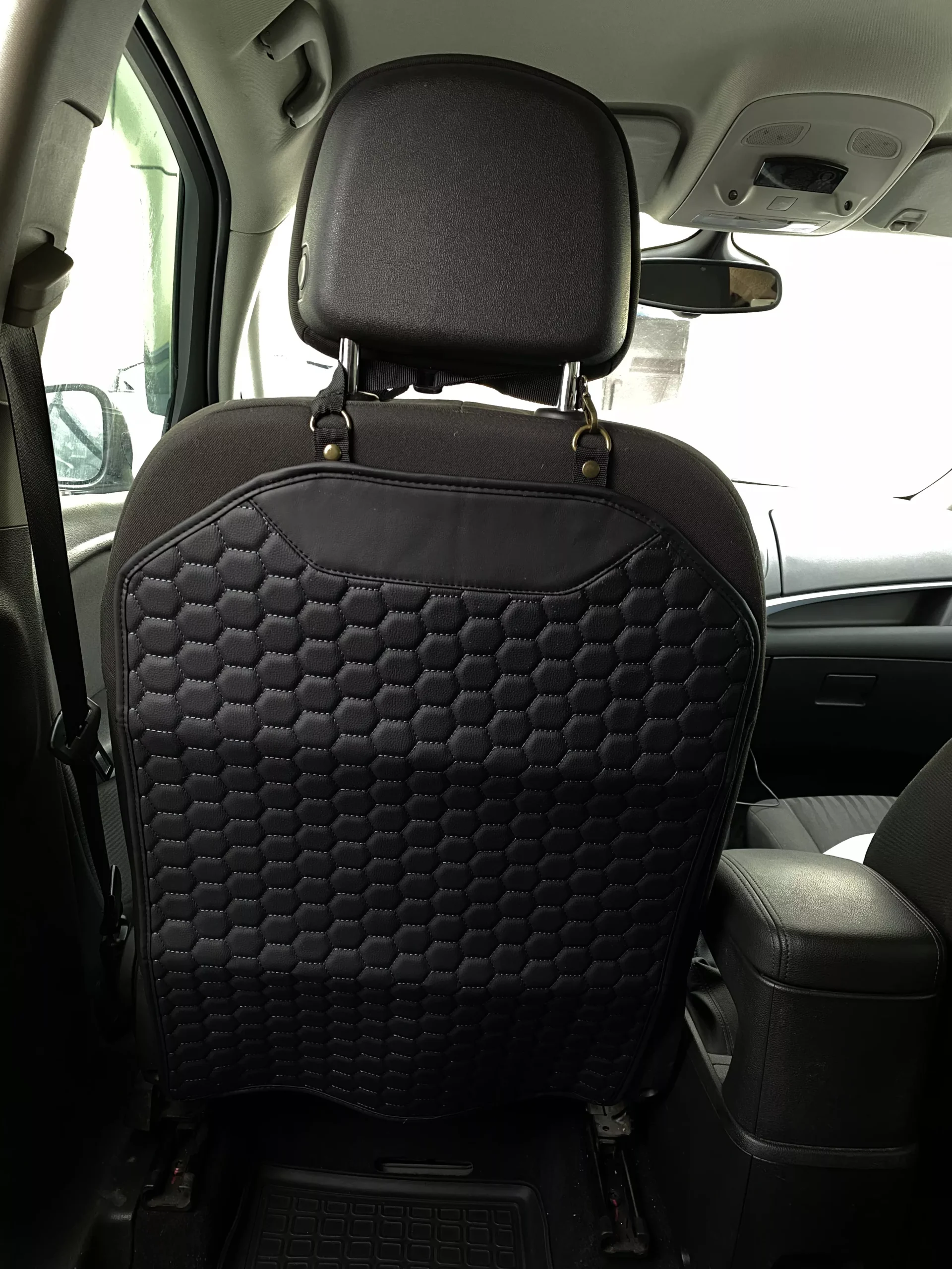 Featuring a sophisticated solid black color with a hexagonal pattern, our seat back protector fits seamlessly into any car interior. It not only guards your seat upholstery against dirt and shoe marks but also adds a touch of style.