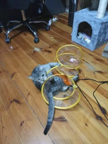 Our cat finds endless entertainment in this toy. Whether leaping onto it, rolling around, or chasing after the feathers and bells, she's always occupied. Despite the feathers coming off quickly, it hasn't dampened her enthusiasm. Overall, it's a worthwhile investment.