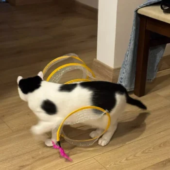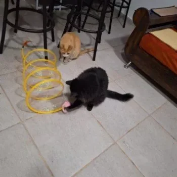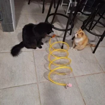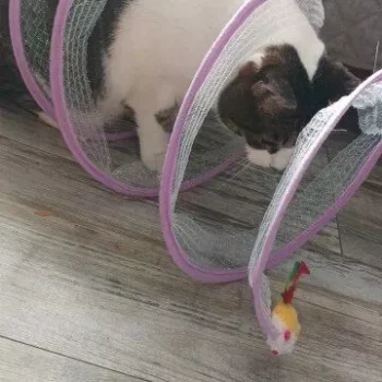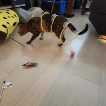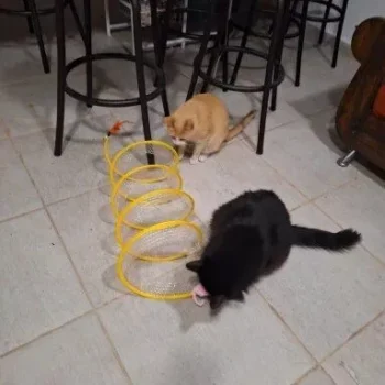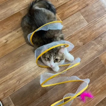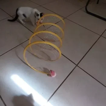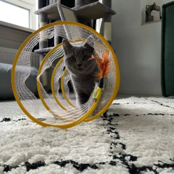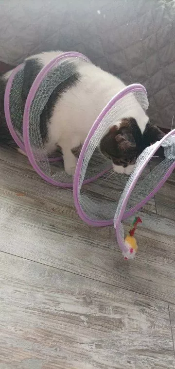 This cat adventure tunnel has been a wonderful purchase. my cats are obsessed with it and spend hours playing in it. they love the crinkly sound and enjoy running through the tunnel and hiding in it. the material is durable and it was very easy to set up. the tunnel is lightweight, making it easy to move around the house to different play areas. it also folds up nicely for storage, which is a big plus. since we got this tunnel, my cats have been more active and entertained. they love the multiple entrances and the spacious interior. it’s great to see them having so much fun and being so playful. this tunnel has been a great addition to their toy collection and has provided endless hours of enjoyment. i’m very happy with this purchase and highly recommend it to other cat owners looking for a fun and durable toy for their furry friends.