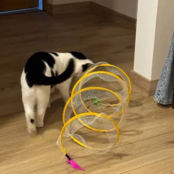 Although my cats were initially hesitant, they eventually warmed up to this toy, particularly enjoying the bell toys on the ends. Now, they use it as intended, running through it with enthusiasm.