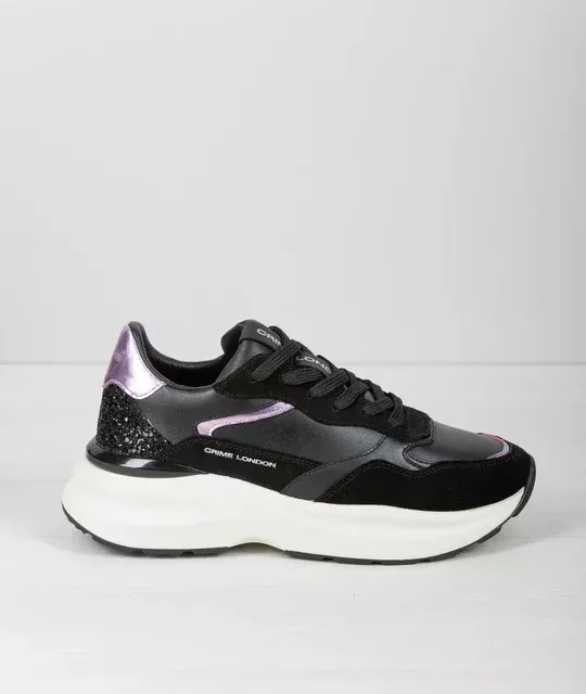 The Crime London Women’s Black Leather Shoes are crafted for women who appreciate a blend of elegance and practicality. The leather-dominant composition ensures a polished and luxurious appearance, while the addition of fabric enhances breathability and flexibility. The durable rubber sole ensures long-lasting wear and dependable traction, making these shoes perfect for navigating urban environments or embracing cooler weather. Their lace-up design and sleek silhouette create a timeless look that complements any fall or winter outfit.