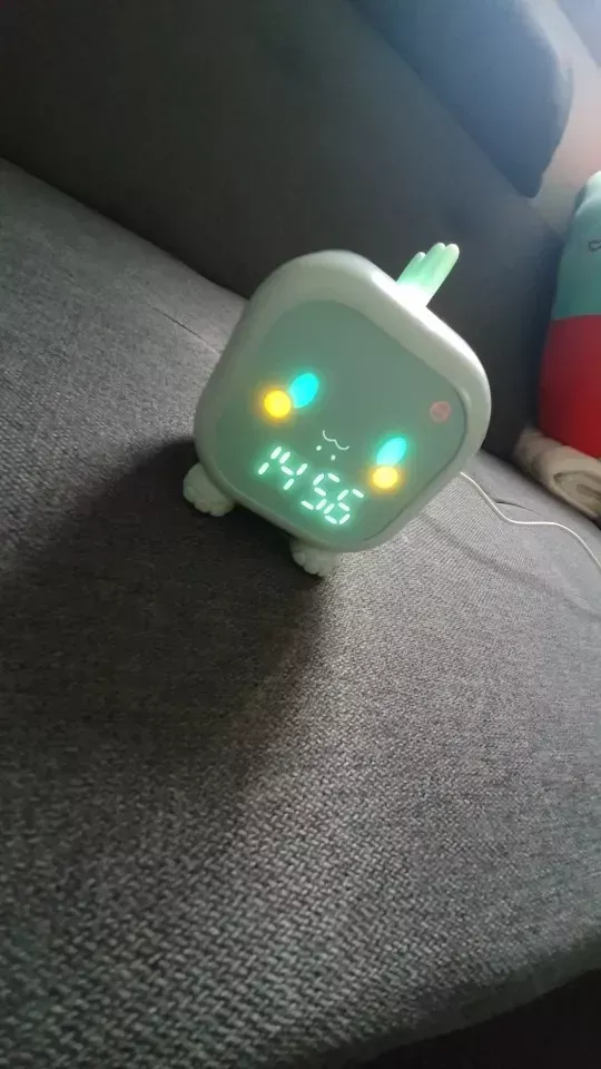 this alarm clock has been a great purchase. the dinosaur design is a hit with my child and the voice control feature makes it easy for them to use. the night light is soft and calming, perfect for helping them fall asleep. the alarm is simple to set and has a pleasant sound that wakes my child without startling them. it’s also very well-made and durable. mornings have become much smoother since we started using this clock. highly recommend to other parents looking for a fun and practical solution.