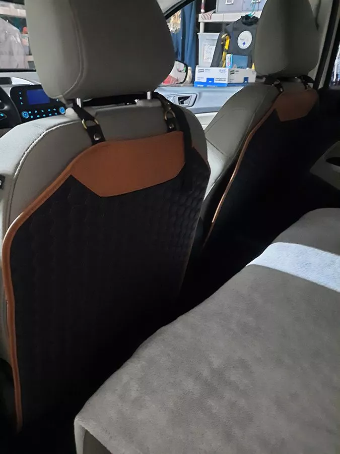 these premium eco leather kick mats are fantastic. my car seats were always getting dirty from my kids’ shoes, but these mats have put an end to that. the eco leather is high-quality and feels very luxurious. installation was quick and easy, and they fit perfectly. they don’t move around and stay securely in place. cleaning is a breeze – just wipe them down and they look like new. they’ve really helped keep my car’s interior looking clean and new. if you have kids, these kick mats are a must-have to protect your seats and keep your car looking great. highly recommend.