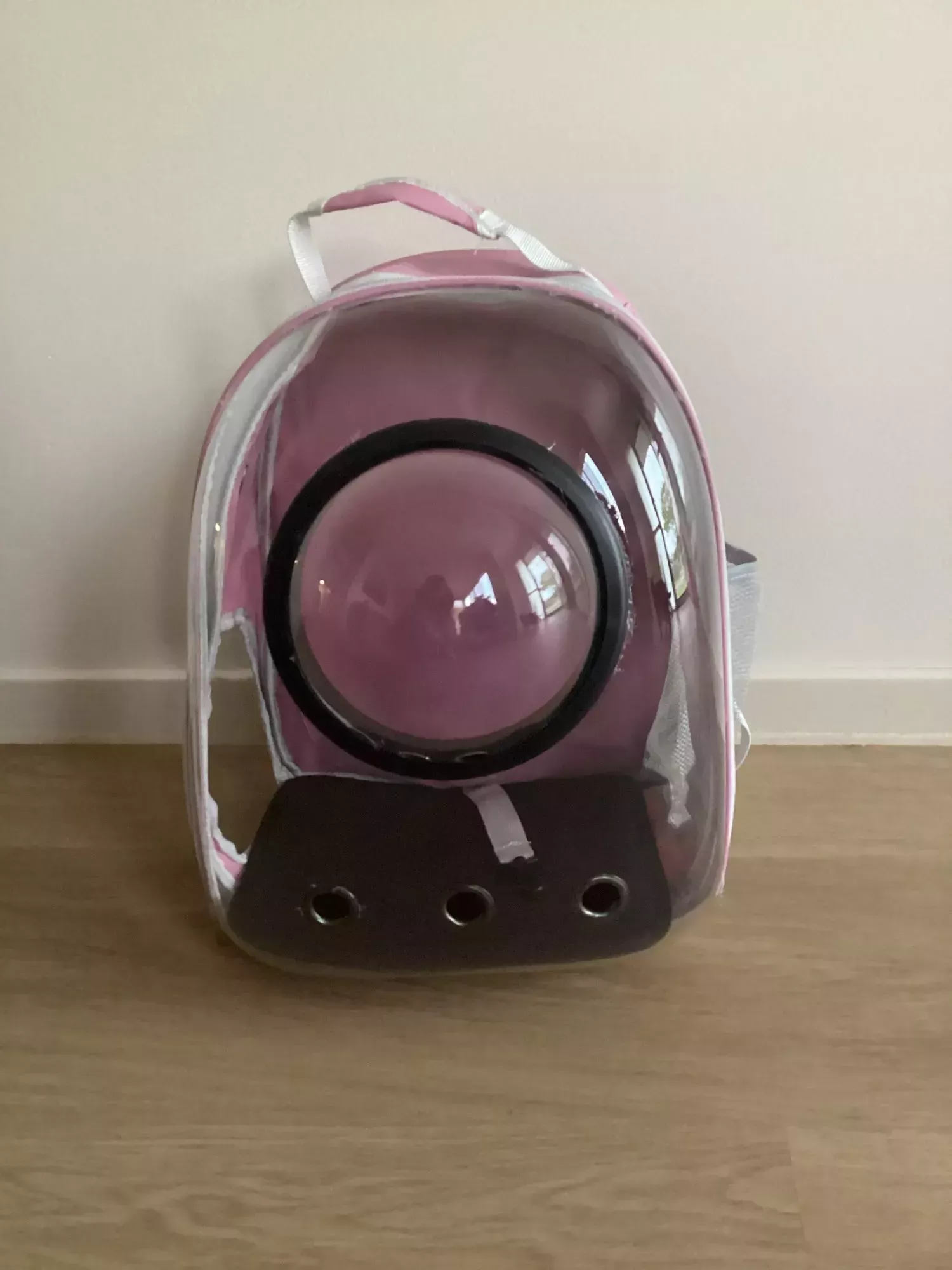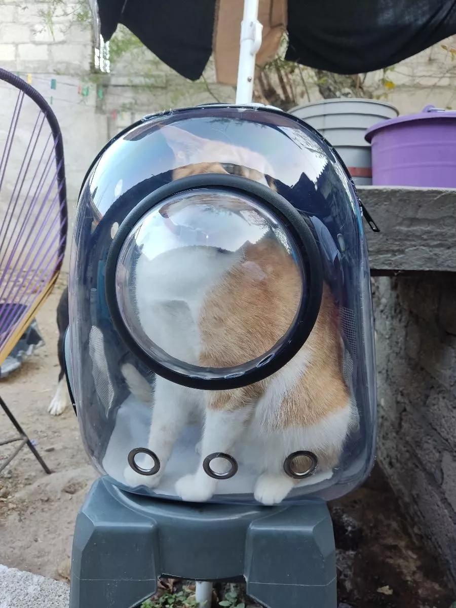 this cat backpack has been a fantastic purchase. my cat loves the spacious interior and the transparent design allows them to see everything, which keeps them calm and curious. the ventilation is top-notch, ensuring my cat stays comfortable and cool. the backpack itself is very sturdy and well-made, with padded straps that make it comfortable to wear. it’s stylish and i get many compliments on it. it’s perfect for vet visits, walks, or even just short trips. my cat feels secure and happy inside. it’s also easy to clean, which is a big plus. overall, i’m extremely satisfied with this backpack and would highly recommend it to other cat owners.