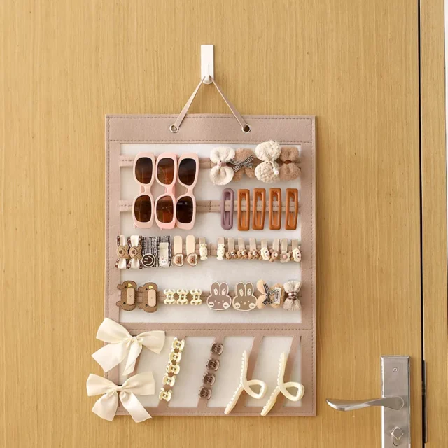 Say goodbye to cluttered drawers and lost hair clips! This versatile hanging organizer is designed to keep your hair bows, clips, scrunchies, and sunglasses perfectly organized in one convenient place. Made from durable polyester, it offers a sturdy yet lightweight solution that easily hangs behind doors or on walls, making the most of your space without taking up any room on your dresser or countertop.