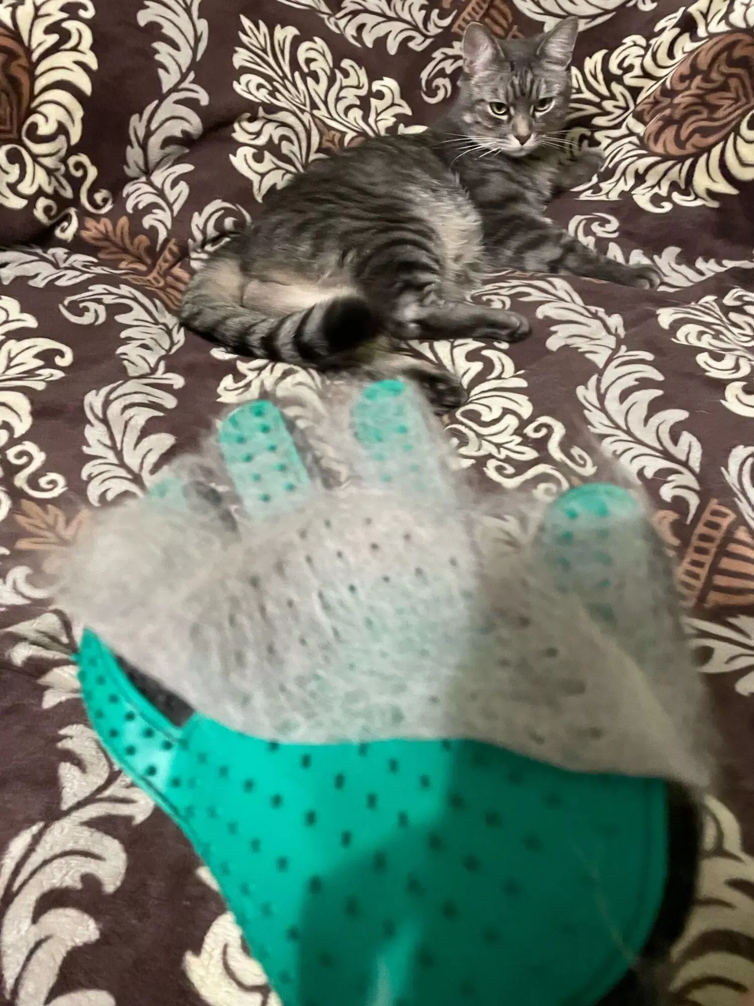 This glove is not only effective but also gentle on my furry friend’s skin. Plus, it fits well due to its generous size 🙌