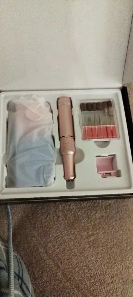 This rechargeable nail drill machine is amazing. it’s very easy to use and perfect for at-home manicures. the drill is powerful and has multiple speed settings for precise control. the rechargeable battery lasts a long time and makes the drill very portable. the attachments are great and cover all my nail needs. the drill is quiet and doesn’t get hot, even with prolonged use. my nails look professionally done every time. it’s a fantastic tool that saves me time and money. i’m very happy with this purchase and highly recommend it to anyone who loves doing their nails. it’s a great investment for maintaining beautiful nails at home.