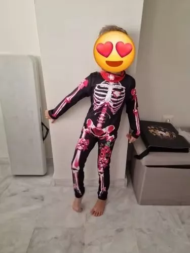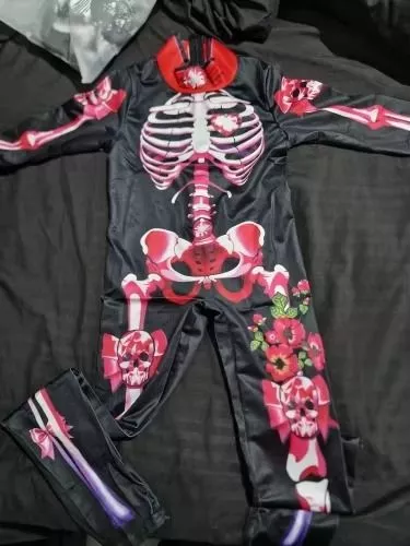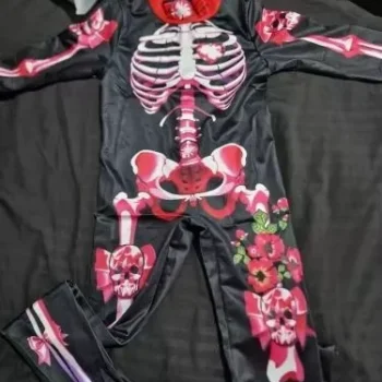 The intricate skeleton design is highlighted with a touch of floral elegance, giving it a unique twist. With a range of sizes available, this costume is tailored to fit both women and children perfectly. The material is soft on the skin, ensuring you stay comfortable all night long, while the detailed print adds a truly haunting, yet beautiful, effect. Plus, with its easy-to-wear jumpsuit style, you’ll be ready to go in no time, whether you’re trick-or-treating, attending a spooky bash, or posing for Instagram-worthy photos!