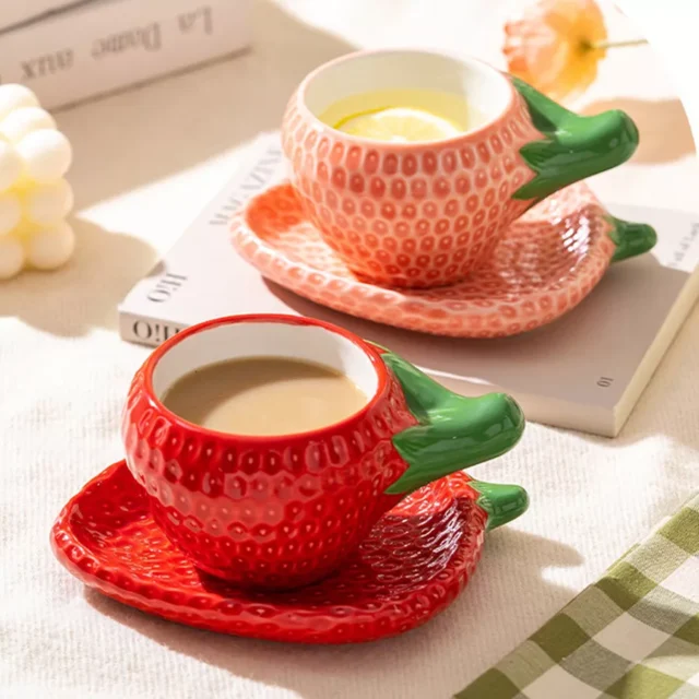 Unlike ordinary mugs, this set blends function with personality. The strawberry-themed design brings a splash of color to your kitchenware, while the high-quality ceramic ensures it’s more than just a pretty face. With a comfortable grip and versatile use, it’s as practical as it is adorable.