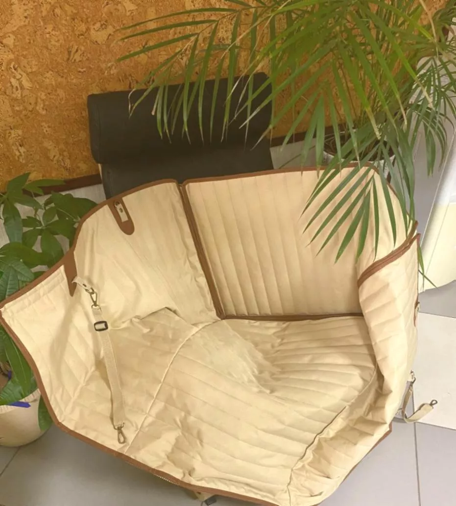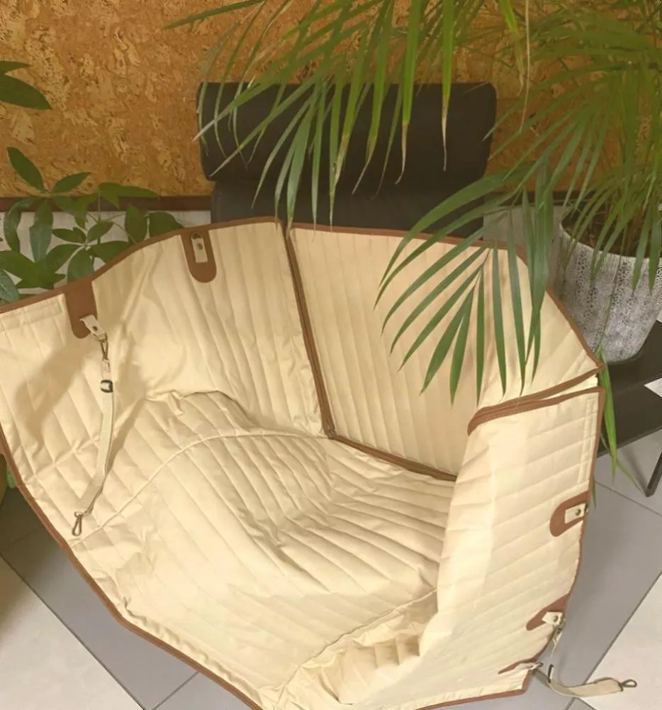 This car hammock is a godsend! With its chic beige and brown colors, it blends perfectly with my vehicle’s interior. The geometric pattern is trendy yet refined, adding a touch of sophistication to the overall look.