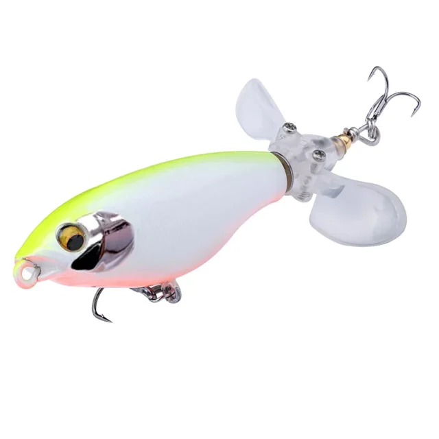 • Explosive Topwater Action: Double rotating tail creates lifelike splashing to provoke strikes.